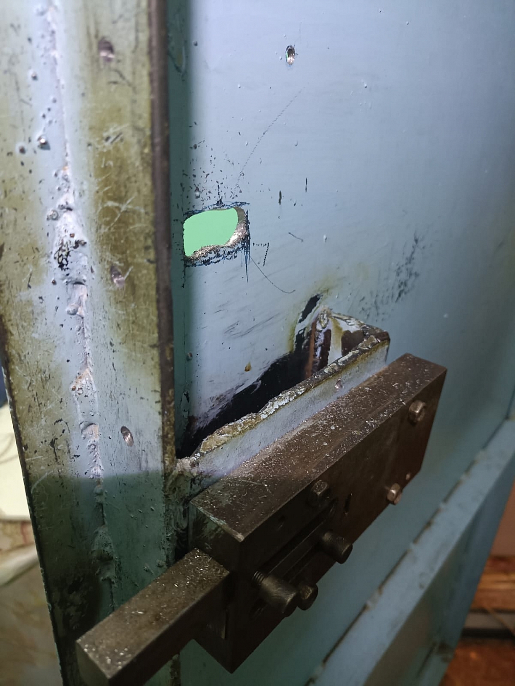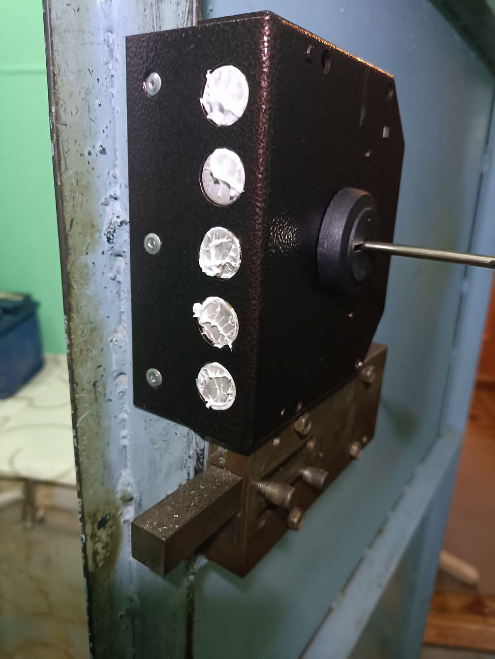Замок 1.06.51 был выбран не случайно. Накладной замок удобен в установке и подходит практически для любой железной двери. Пенсионеры согласились с предложением мастера, и вскоре работа началась. Установка прошла быстро и качественно благодаря опыту профессионала. Сначала был установлен замок, на ригеля была нанесена монтажная паста, что бы отметить места для входа ригелей в косяке двери. Фото о процессе работы выкладываем ниже.