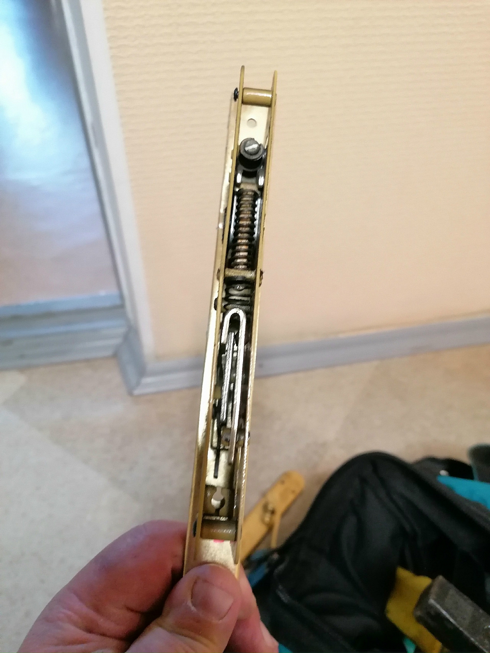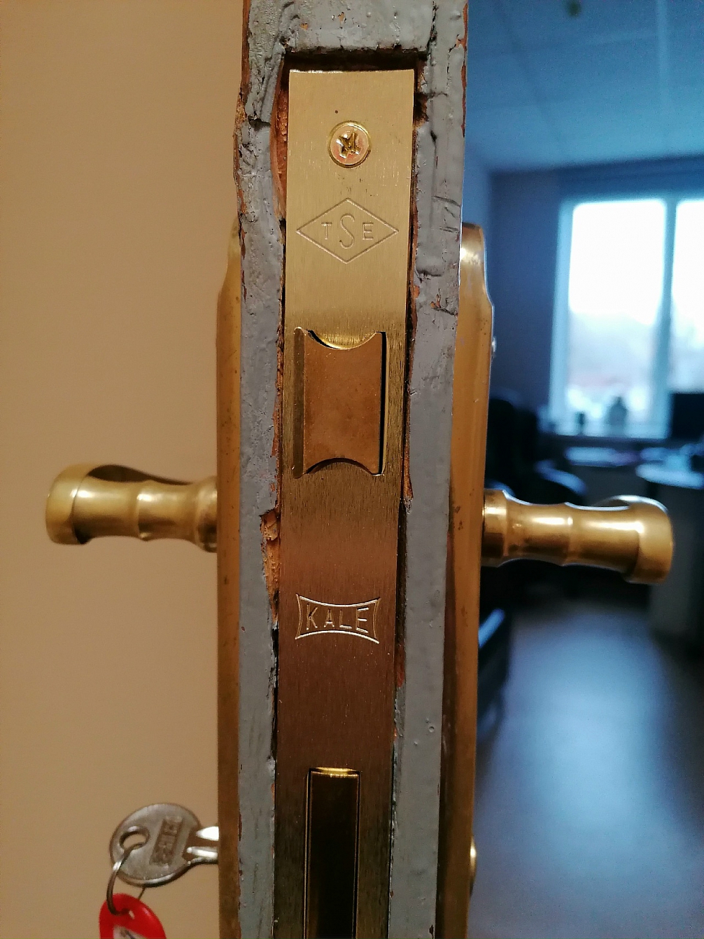 Был вызов на Бор на срочную замену замка в двери офиса. Старый замок чудом был открыт сотрудниками офиса и они не рискнули закрывать его вечером по окончании работы а решили вызвать нашего специалиста чтобы он заменил им замок в двери. Сказано сделано. Мастер приехал извлёк старый замок у которого сломался толкатель привода язычка и поставил новый точно такой же который прослужит ещё долгие годы. Замок был производство турецкой фирмы Kale Kilit 152R.
