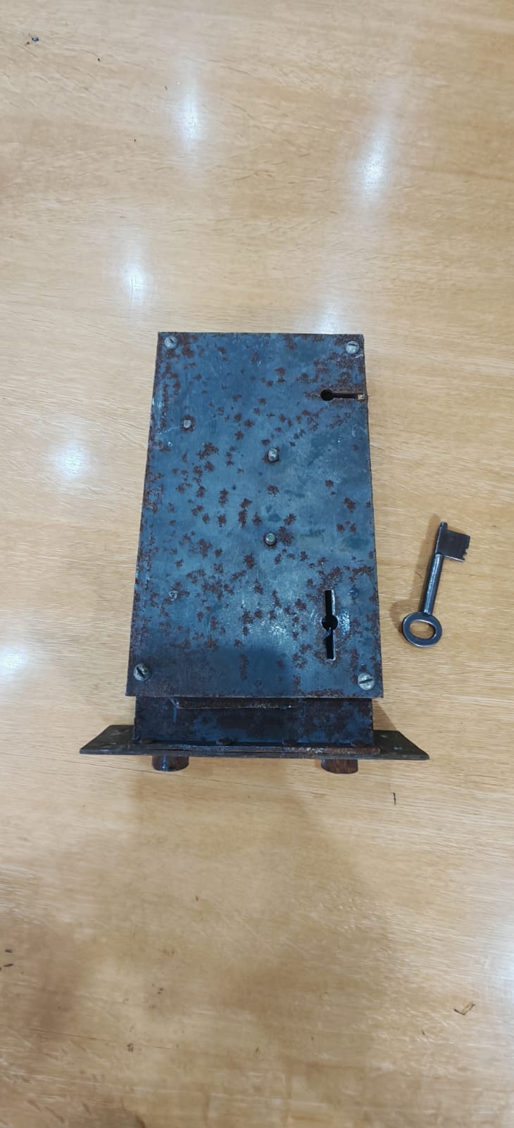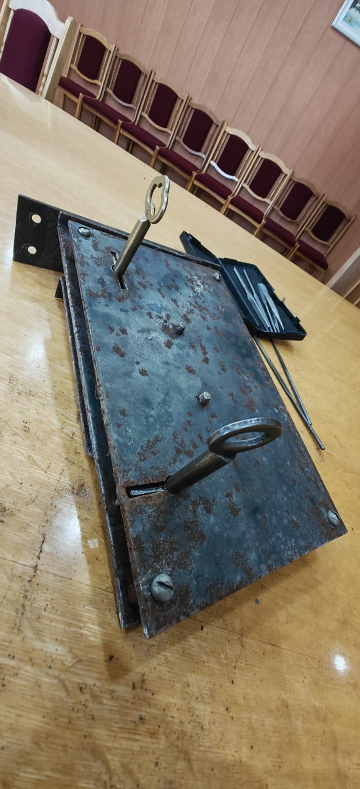Мастер открыл встроенный несгораемый сейф времен СССР и восстановил к нему ключи для двух замков.