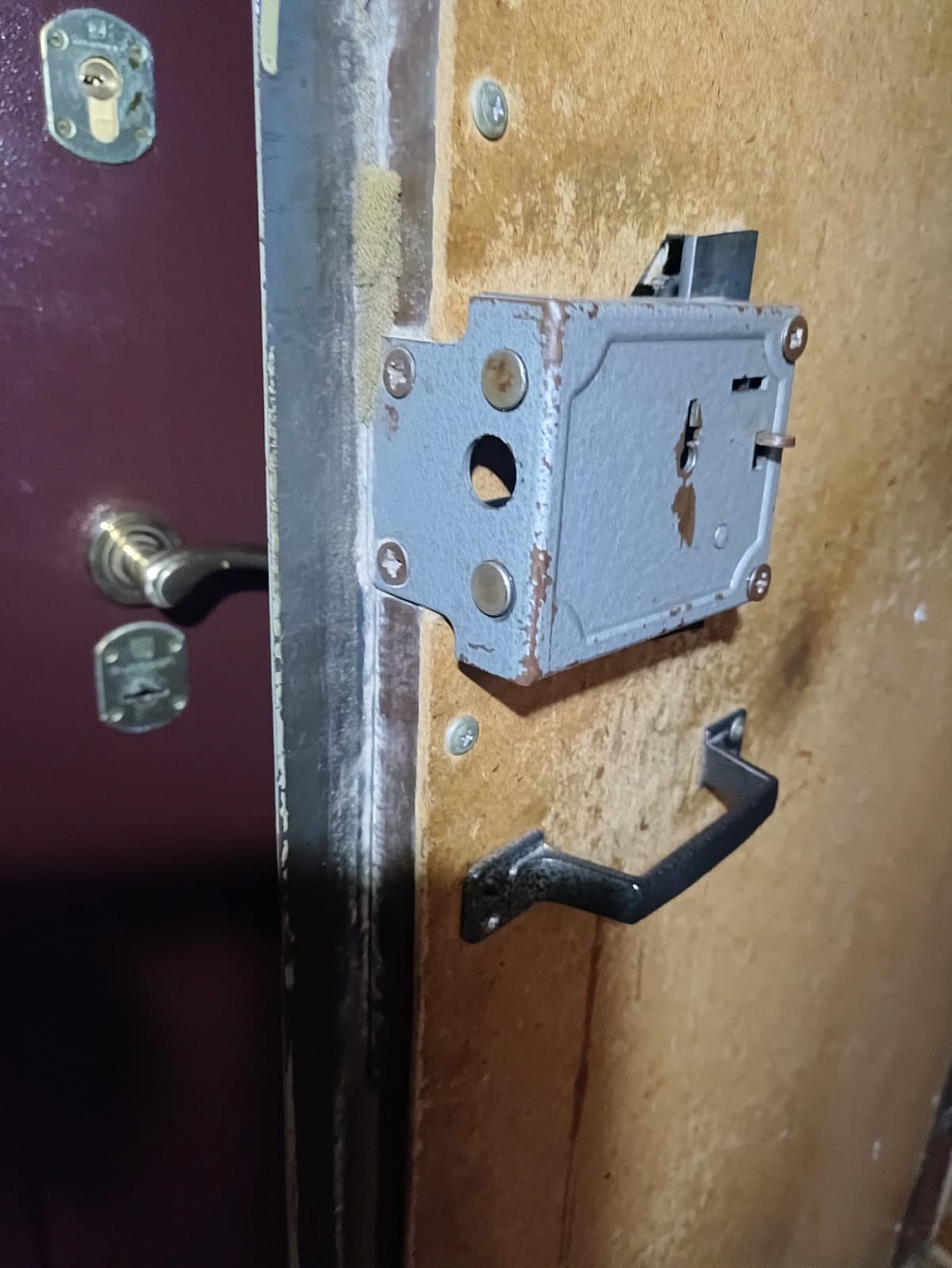 30 января 2026 года с Балахнинского района Нижегородской области, поступила заявка на замену замка на тамбуре в общежитии семейного типа. Соседи по тамбуру решили поменять старый накладной замок "Москва",производства завода "Труд" на новый. Заказчики нашли в интернете нашу компанию, позвонили и попросили приехать. Мастер взял с собой на выбор несколько накладных и пару врезных примерно подходящих по размеру замков. Владельцы выбрали ELP Казанского завода «Электроприбор».