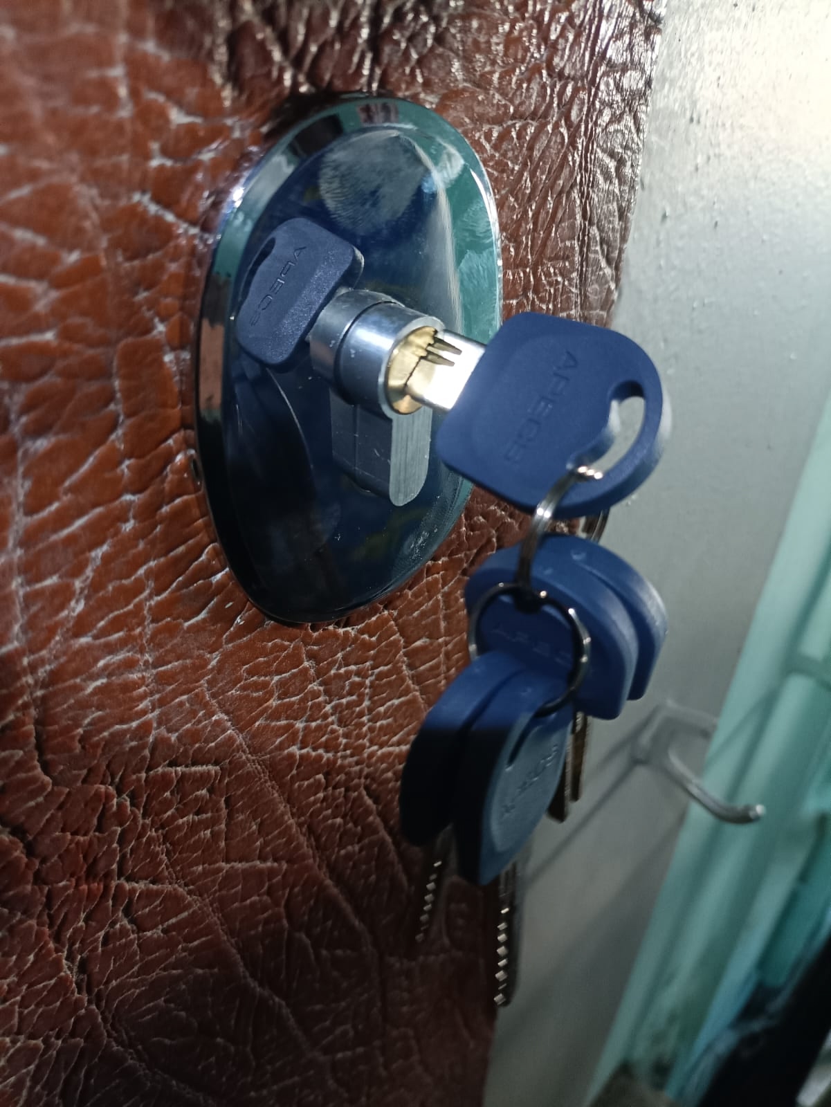 Наш специалист по просьбе собственников квартиры заменил сразу два замка: на железной входной двери и внутренней входной деревянной.