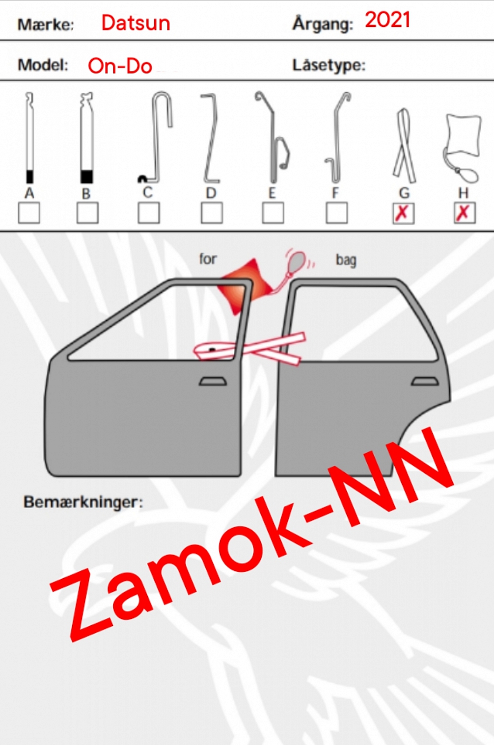 Хотелось бы особо подчеркнуть, что это отнюдь не пособие по вскрытию автомобилей для людей с преступными намерениями. Это схематическое изображение носит ознакомительный характер для любознательных людей которые хотят сами решать свои проблемы возникшие в силу обстоятельств. И когда нет возможности вызвать профессионального специалиста из аварийного сервиса по вскрытию "Zamok-NN".