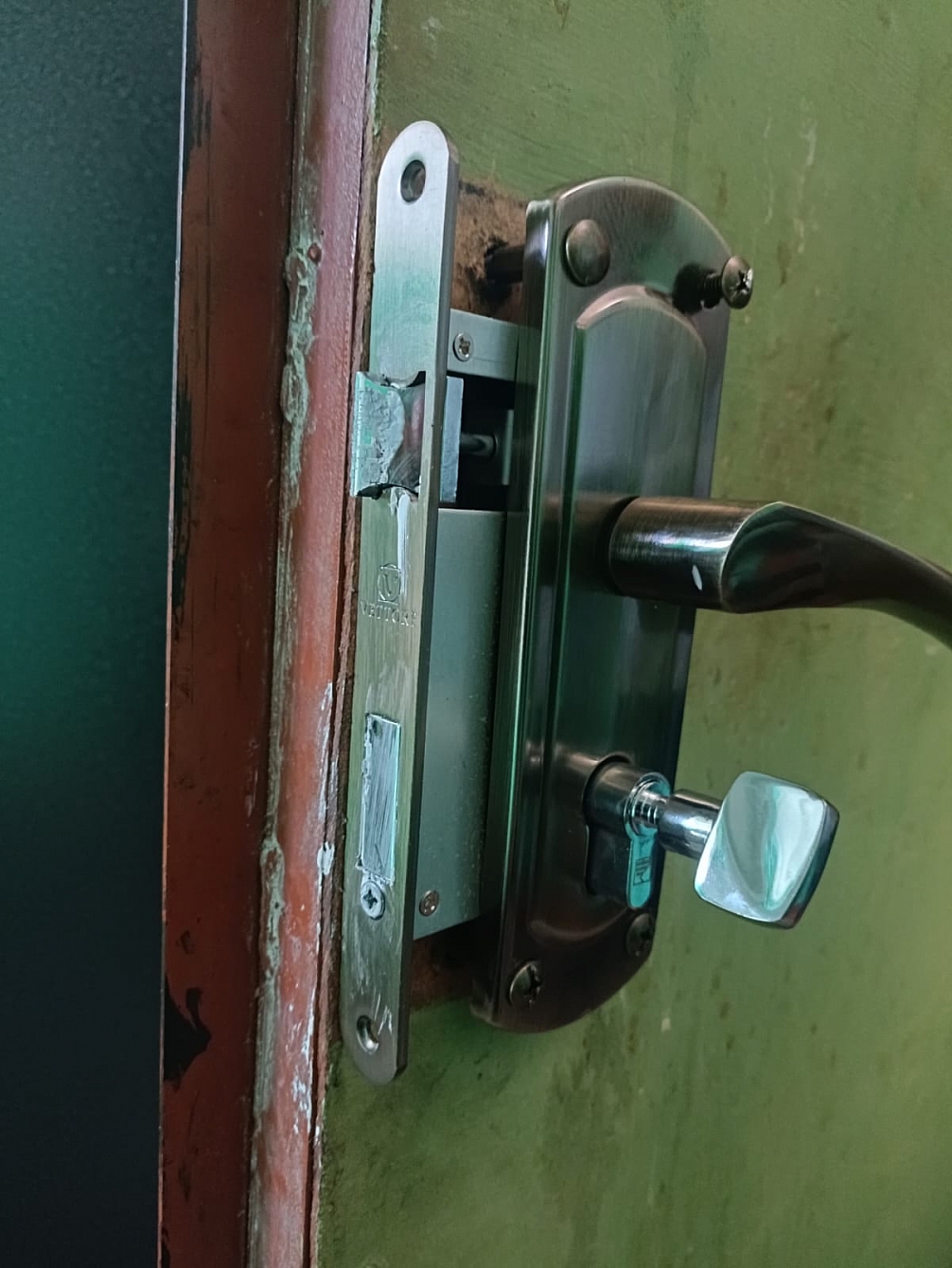 Мастер по имени Алексей приехал на адрес уже в течение получаса. Осмотрев дверь и старую замочную фурнитуру, он предложил заменить отслуживший замок - щелкун с финским ключом, на новый корпус с личинкой под перфо-ключ и новыми ручками. Аккуратно демонтировав старый замок, мастер сохранил старое посадочное место, но с небольшими доработками в основном это касалось косяка, для корректного функционала нового замка. Работа заняла около часа: аккуратная сверловка, подгонка, проверка механизма и повторная регулировка — всё без излишней суеты и процедуры демонтажа двери.